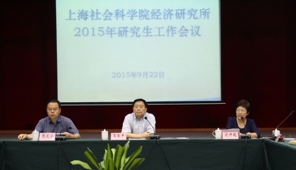 沈开艳副所长向2015级博士、硕士新生致欢迎词并介绍了经济所的悠久历史与深厚底蕴;石良平介绍了经济所的研究特色、学科现状以及下设各个学科的召集人,并随后宣读了2015级博士生、硕士生的导师名单,并为师生们做了引见。