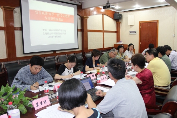 随后,党总支书记、副所长沈开艳向督查组汇报了经济所党总支开展“两学一做”学习教育工作的具体做法、取得的主要成效及存在的不足。自今年初,开展“两学一做”学习教育以来,经济所党总支、所领导班子高度重视、统一思想、提高认识,并加强组织领导,制定详细的学习教育工作方案和计划。通过宣传引导,使全体党员进一步明确学习教育内容。在活动中坚持问题导向,学用结合,知行合一,注重典型带动,党员干部率先垂范。通过“两学一做”学习教育不断深入,经济所党员业务能力不断提升,取得了显著成绩。今年来获得一系列重要课题项目,包括国家和上海市社科基金或自然科学基金课题,获得省市及以上各类优秀成果奖项,在全院名列前茅,其中党员的比重占绝对优势,起到了先锋模范的作用;七一前夕,经济所党总支荣获上海市宣传系统先进基层党组织荣誉称号受到表彰。针对工作中存在的不足,党总支将努力改进,坚持问题导向、知行合一,不断创新学习工作模式,充分发挥党组织战斗堡垒作用。
