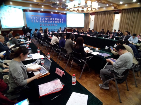 2018年4月10日下午,《2018上海经济发展报告》和《2018浦东经济发展报告》联合新闻发布会,在院部101会议室顺利召开。上海社会科学院周伟副院长、经济研究所沈开艳所长、浦东新区党校周小平常务副校长、社会科学文献出版社蔡继辉副总编辑、上海社科院党委宣传部部长汤蕴懿及经济所和浦东党校40多位科研人员参加了本次新闻发布会。会上,沈开艳所长作了《上海建设卓越全球城市的战略思考》的主旨报告。会议由经济研究所沈桂龙副所长主持。