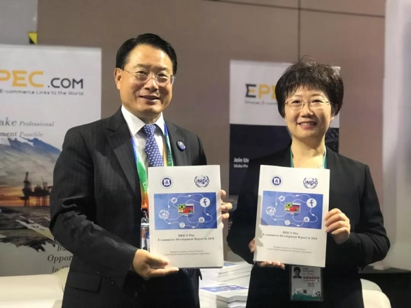 2018年11月6日,上海社会科学院经济研究所与联合国工业发展组织在进博会现场联合发布《2018金砖+国家电子商务发展报告》。本次发布会由UNIDO贸易、投资和创新部负责人Raymond Taveres先生主持。上海社会科学院经济研究所所长沈开艳研究员出席了发布会。