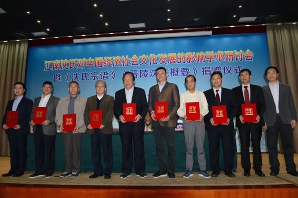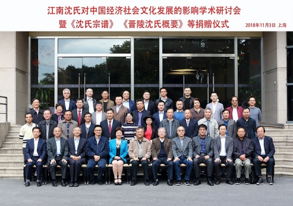 11月3日下午,由上海社会科学院经济研究所、历史研究所、文学研究所共同发起的“江南沈氏对中国经济社会文化发展的影响学术研讨会暨《沈氏宗谱》《晋陵沈氏概要》等捐赠仪式”在社科院分部举行。上海市人大法制委原主任、上海市社联原党组书记、上海社会科学院原副院长沈国明,上海文史馆原馆长沈祖炜,经济研究所所长沈开艳,国际问题研究所所长王健,新闻研究所所长徐清泉,世界中国学研究所所长沈桂龙,上海社科院图书馆馆长钱运春,常州姓氏文化研究会会长苏慎,无锡市惠山区委党校常务副校长沈惠兴,江苏福昌环保集团董事长、晋陵沈氏宗亲会会长沈福昌等学者及江南沈氏代表出席本次研讨会。文学研究所所长荣跃明、历史研究所副所长叶斌主持了本次会议。