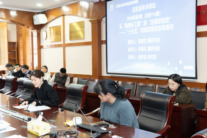 2026年3月24日上午,2026年度第4期(总第118期)“沈志远学术讲坛”在经济研究所503会议室举行。本所西方经济学研究室陈明艺副研究员作了题为“从‘稳增长工具’到‘治理型制度’——‘十五五’财税改革的系统重构”的学术报告。本次报告由唐忆文研究员主持,李泽众副研究员点评。